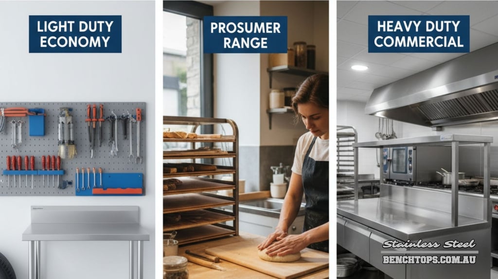 Confused by quality? Decode the three Stainless Steel Benchtops Ranges—Light Duty, Prosumer, and Heavy Duty—to ensure you buy the perfect bench for your needs. Message for a free assessment.