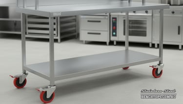 Locking Castor Wheels: Not just wheels, but high-load, locking castor wheels. They allow movement when cleaning but lock solid when prepping, ensuring zero wobble.