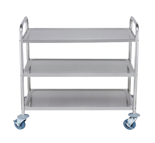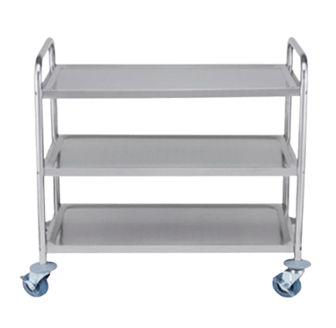 This workhorse features three solid stainless steel shelves capable of handling a 150kg maximum load. Equipped with four smooth-rolling castors (two with brakes), it ensures safe and easy transport. Supplied flat-packed for cost-effective transport, it provides high utility right away.